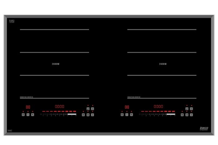- 2 vùng nấu công suất lớn, điều khiển cảm ứng trượt siêu nhạy.